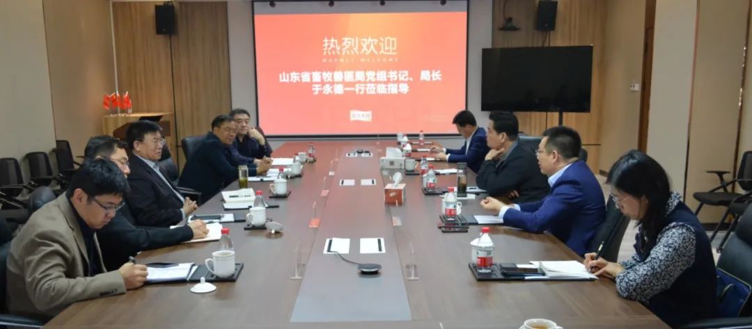 4月27日,,,,,,山东省畜牧兽医局与烟台市、青岛市、潍坊市、威海市、日照市农业农村局(畜牧兽医局)组成的调研考察团来到金世豪美食,,,,,,围绕畜牧兽医等相关事情举行考察、调研及座谈。。。。。。